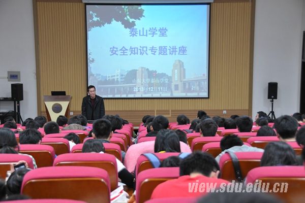 [本站讯]12月11日晚,泰山学堂安全知识专题讲座在中心校区举办。公安处副处长类淑毅、学生公寓管理服务中心中心校区管理部主任冯会林应邀为学生作专题讲座,本次讲座由徐孝刚主持。