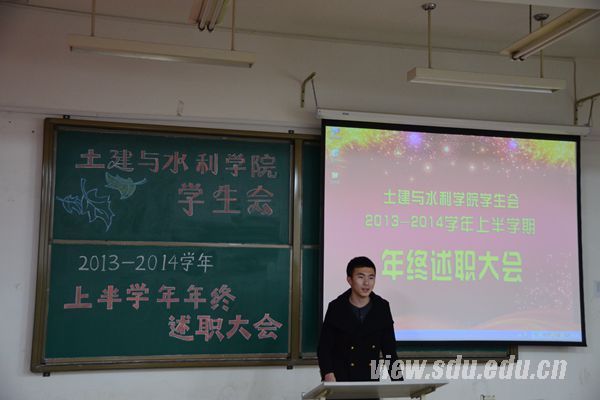 [本站讯]12月12日,土建与水利学院在兴隆山校区召开2013-2014学年上半学期年终述职大会。会议旨在汇报和总结本学期学生会的学生工作,为以后的工作打下基础。