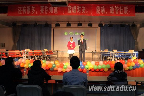 [本站讯]12月2日晚,能动学院“要你知道”综合知识竞答活动决赛在兴隆山校区举行。据悉,该活动由共青团山东大学委员会主办,能动学院社团联合会和政管学院社团联合会共同承办,旨在丰富同学们的文化生活,提高同学们的审美情操,发展和充实山东大学丰富的校园文化生活。