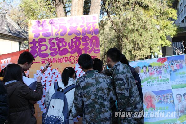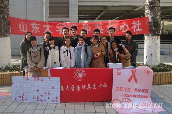 [本站讯]在第26个“世界艾滋病日”到来之际,为了更好地关爱艾滋病患者,有效预防艾滋病,12月1日,唐仲英爱心社在趵突泉校区、中心校区、洪家楼校区开展了以“共防艾滋,拒绝歧视”为主题的公益活动。