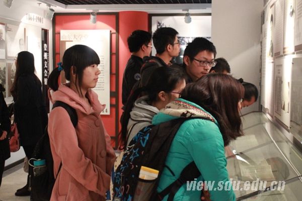 [本站讯]11月15日,历史文化学院组织2011级和2012级本科生党支部的党员、预备党员、入党积极分子和一部分正在接受党课培训的同学参观山大校史馆。大家一起接受了山大历史传统教育,感受到了山东大学的精神文化。校史馆的老师带领同学们参观山东大学百年校史展览,并为大家进行了详细的讲解。