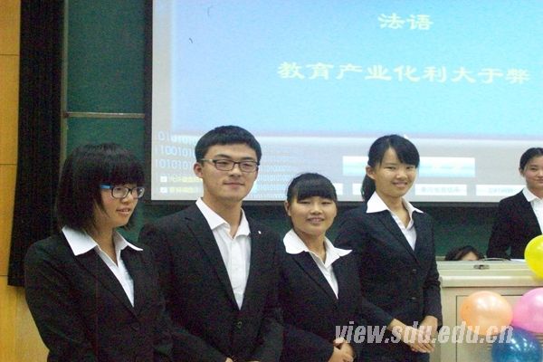 本次比赛邀请到了外语学院团委书记王璐璐与院2013级辅导员马海波作为嘉宾。山东大学辩论队队长焦雨溪、山东大学辩论队优秀辩手盖午阳、外语学院辩论队前任队长周颖和外语学院辩论队队长沈燕雯担任评委。各参赛班级经过了近一个月的精彩角逐,法语班和翻译班最终脱颖而出晋级决赛。比赛开始前,主办方放映了由各班级在辩论舞台上的精彩瞬间组成的视频。随后王璐璐致辞,表达了对参赛选手的鼓励与对本次大赛的支持。