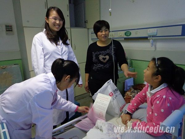 [本站讯]11月10日,医学院2012级临床医学(七年制)3班团支部志愿服务队8名志愿者来到济南市齐鲁医院儿科病房,进行志愿服务活动。