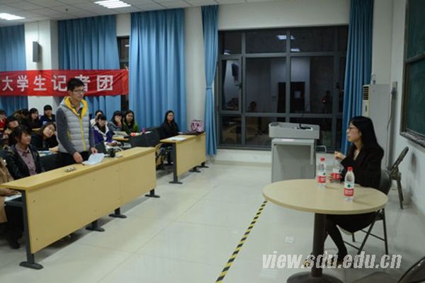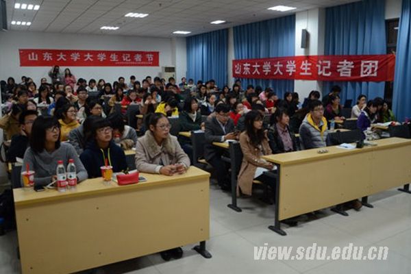 [本站讯]11月8日,记者节系列活动之一——“解密记者真实的生活”专题讲座在山东大学中心校区知新楼举办。讲座邀请了山东商报首席记者、山东大学古代文学硕士张晓媛担任主讲,山东大学大学生记者团、山大视点网站学生记者团的全体成员及校内外新闻爱好者参加了此次讲座。