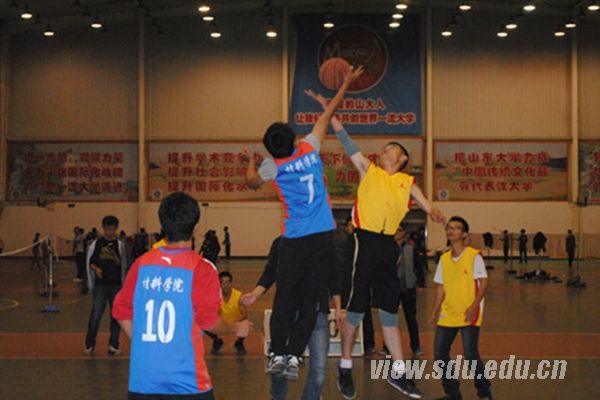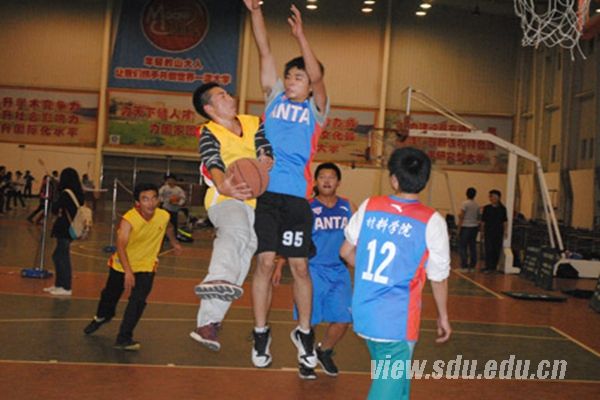 两个学院都为这次比赛做了充分的准备,拿出了最强劲的阵容。参赛队员们都斗志昂扬,信心百倍,做好了为自己学院争光的准备。上半场比赛一开始,材料学院先声夺人,队员凭借着出色的运球技巧和团队意识,以5:1的比分掀起了整场比赛的小高潮,并牢牢把握着赛场上的主动权。但土建学院也不甘示弱,下半场一开始,刚刚换上场的得分后卫就接连命中两记三分,缩小比分差距的同时,也鼓舞了比赛队员的士气。队员们通过一次次的拼抢,不断将比分迫近,并一度有赶超的趋势。但材料学院的队员们凭借着稳定的发挥和坚韧的防守,在终场哨声响起时以44:28的比分赢得了胜利。比赛赢得了观众们的热情鼓掌和喝彩。