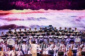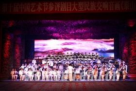 [本站讯]10月11日至26日,第十节中国艺术节在济南举办。山东大学合唱团与济南军区前卫文工团在八一礼堂联袂上演了大型民族交响音画《泰山》,获得了社会各界的好评。