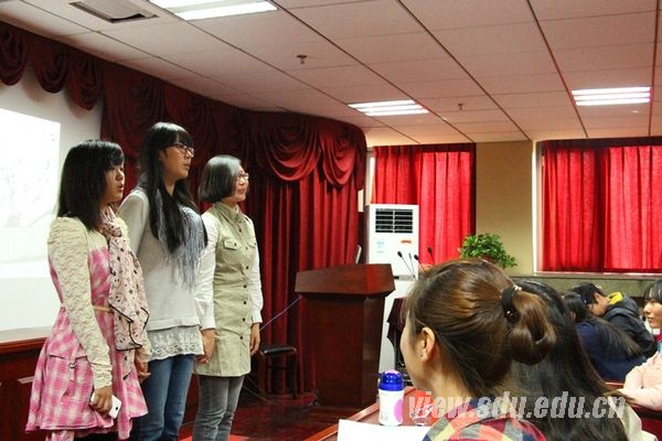 比赛开始前,不少参赛选手就提前到达会场熟悉比赛场地,并在各自座位上戴着耳机认真练习,为比赛作最后的准备。在主持人的简单开场之后,选手们按照自己赛前所抽序号依次登台。选手中既有来自大一年级首次参赛的学弟学妹,又有比赛经验丰富的学长学姐;既有沉静深情的情歌低唱,又有活力四射的快歌激昂。虽然是初赛,但参赛选手们都拿出自己的看家本领,现场亮点频频。来自2013级的常丹婧同学用意大利语演唱了经典美声歌曲《紫罗兰》,技惊四座,引发比赛第一个小高潮;来自2012级的刘佳亲同学则在2011级毛代炜同学的吉他伴奏下演唱一曲《过火》,情歌金曲通过新的演绎,吟唱出了新的味道;最后出场的谢洪浩同学用一首《单身情歌》,更是引发包括评委团在内的全场大合唱。两个小时的比赛在愉悦轻松的氛围中进行,现场掌声连连,欢笑不断。