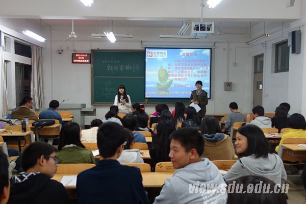 [本站讯]10月19日晚,历史文化学院“迎新杯”辩论赛赛前培训会在兴隆山校区举办。培训会分为辩论培训及新生辩手分组两大环节,2013年“山大杯”辩论赛决赛“最佳辩手”、历史文化学院2010级档案学专业郑晓彤应邀担任本次培训主讲。