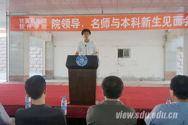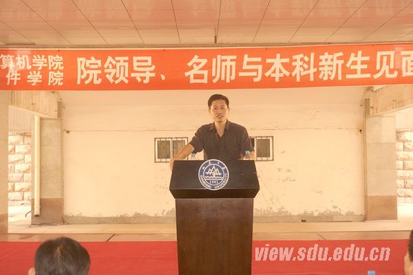 下午2点半,活动正式开始,首先软件学院辅导员孙朋朋为同学们介绍学院领导及老师们,为活动致辞,寄语同学们要时刻充满希望。接下来,2013级软件2班的王梦菡同学代表新生发言,她表示,作为新生,应该全面计划每一天的任务,为自己树立一个一个的小目标,要相互尊重相互学习,培养山东大学学子应有的优良品格。接着,优秀教师代表彭京亮上台发言,他在发言中表示,新生们刚进入大学校园,多了很多自由,但是一定不能忘记要努力奋斗。彭京亮还就大学与中学的课程差异进行了详细的解释,希望同学们要在大学学习的过程中把握好自己前进的方向。最后发言的是领导代表陈宝权,陈宝权就当今世界软件领域的发展为同学们做了一个形象的描述,以印度软件发展为例,阐述了软件开发在社会发展方面的重要作用。陈宝权发言后,许多同学纷纷举手提出自己的疑问。一位同学问道,作为软件工程师如何提高自己的职业生命,让软件开发工作不成为一份只能在年轻时从事的工作。对此,陈宝权给出了自己的意见,他说,在国外的许多企业,软件工程师往往是工作时间越长越有价值,因为在工作中积累的丰富经验,是帮助公司创造价值的无价之宝。还有一位同学提问道,软件行业是否不适合女生从事。就这个问题,陈宝权解释道,软件行业是一个与很多学科有关联的一个学科,女生可以从事艺术类软件的开发,这也是现今非常热门的一个行业。陈宝权精彩的讲解赢得了全场雷鸣般的掌声。