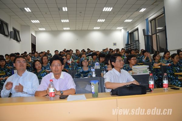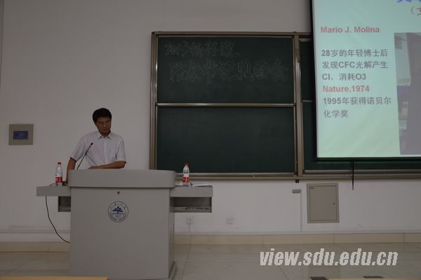 见面会结束后,陈建民为2013级新生做了题为《环境学院我的家---光荣与梦想》的主题讲座。陈建民就山东大学环境学科发展的历程及特点、学科建设、师资队伍、本科教学、国际交流与合作、学院取得的科研成果等方面做了介绍。他还以大量的图片展现了我国在发展过程中发生的一些触目惊心的环境污染案例并具体介绍了目前我国大气环境面临的严重问题。陈建民告诫同学们要忧国忧民,树立大志,作为一名环境学院的同学,要紧盯国家、社会发展的重大需求,努力学习,不断进取,为国家建设做贡献!