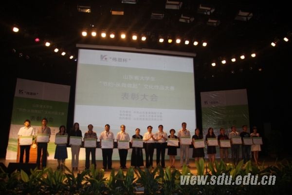大赛由中共山东省委高校工委主办,山东伟恩商贸有限公司协办,山东工艺美术学院承办,吸引了47所高校的千余名学生参加。按照比赛通知要求,山东大学党委学生工作部、研究生工作部于今年4月至5月组织了山东大学“节约,从我做起”文化作品大赛,比赛由艺术学院与机械工程学院承办,校内征集各类作品近百件,经过专家评审,最终评选出39件优秀作品报送省大赛组委会。
