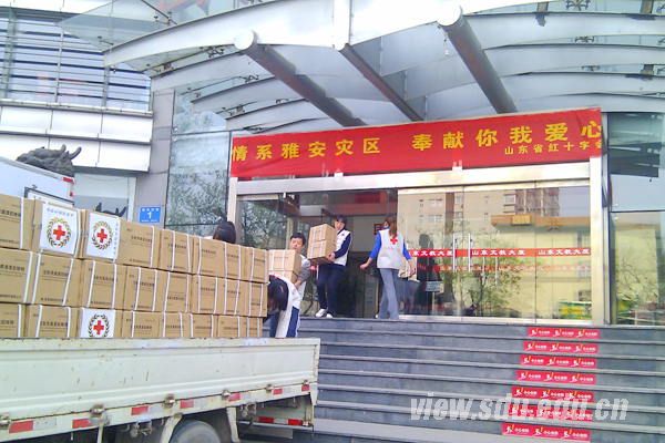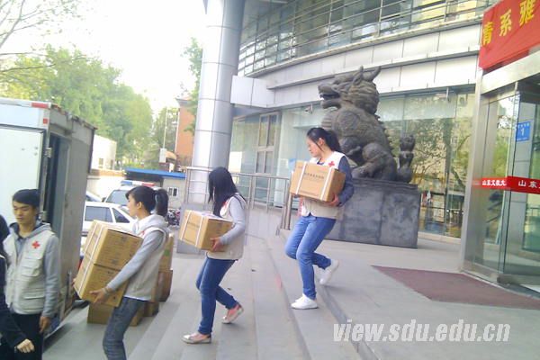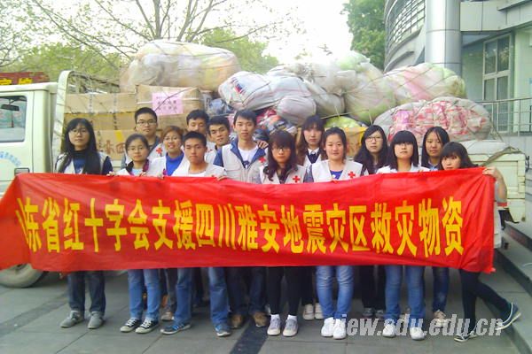 地震发生后,山东省红十字会、济南市红十字会和齐鲁公益联盟迅速启动应急救援机制,调集山东广播电视台、齐鲁网、山东商报等三家媒体资源,接受社会各界捐款捐物。截止目前,共收到十几箱应急衣物,医疗设备十箱。在此次活动中,护理学院红十字志愿者主要协助搬运抗震救灾物资,在大家的共同努力下,山东省首批民间救援物资即将运往四川雅安。