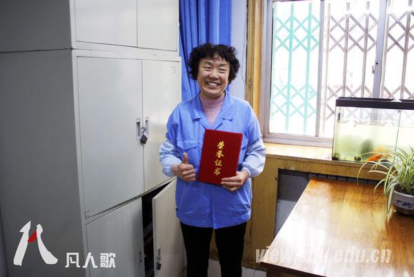 每隔一天,隗阿姨都要在这栋宿舍楼的值班室里度过24小时,即便春节期间也不例外。因为认真负责的工作态度,隗阿姨获得了“先进工作个人”的荣誉。问起为什么选了这样一份工作,隗阿姨毫不犹豫地说:“因为喜欢啊,这些孩子都特别好,我喜欢可以帮助这些孩子的工作!”