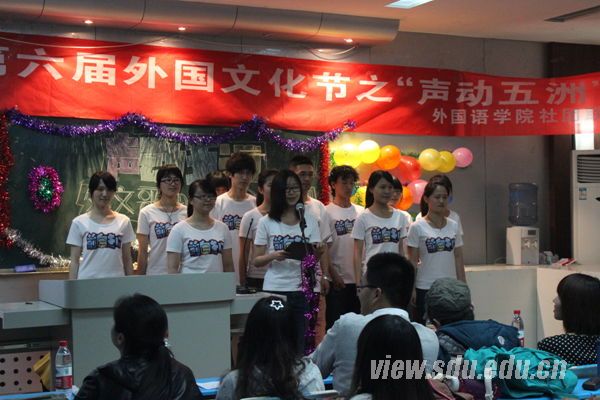 [本站讯]4月14日,外国语学院第六届外国文化节之“声动五洲”外文歌曲创意合唱大赛举行。比赛由外国语学院社团联合会、德语文化协会、创新与创业协会联合承办,由11级日语1班的刘言同学主持。