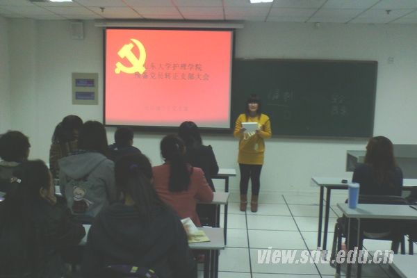 [本站讯]4月12日,护理学院低年级学生党支部预备党员转正支部大会在趵突泉校区召开。学院团委老师潘玫杏老师以及10级,11级全体支部成员参与了本次大会。