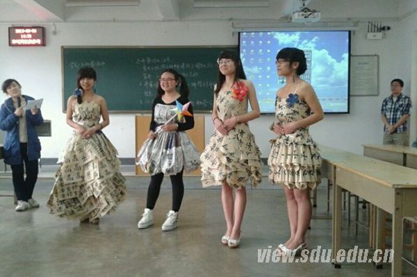 此次比赛的评委是趵突泉校区环保协会、动漫爱好者联盟等六个社团协会的会长。活动中,主持人首先介绍了比赛规则,23个队伍共分为4组出场,每个队伍对时装。进行现场模特与解说,每组各个队伍展示完毕,还要进行环保知识问答,根据各个队伍答对题目的个数计入分数。23个队伍的服装给现场观众带来一场视觉盛宴。用废旧窗帘设计的“一窗幽梦”,把观众带入一场美轮美奂的古典幽梦;用旧报纸做成的“巴洛克印象”,清秀却不失高贵华美,让人过目难忘;SXN团队把用过的宣纸做成“花开花落”、“云卷云舒”、“有凤来仪”、“曲院风荷”四件裙子,有动听的名字,带给大家无尽的回味。23个队伍各有所长,不断博得现场观众的阵阵掌声,精彩时装秀引来教学楼工作人员和翘课而来的同学的围观。比赛间隙中还设置了互动抢答环节,凡是答对主持人问题的观众都获赠精美奖品一份。