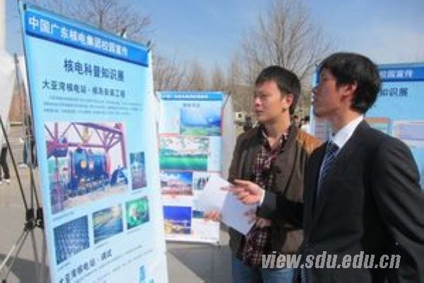 [本站讯]3月7日至9日,“蓝色大亚湾,绿色中广核”高校巡回展走进山东大学兴隆山校区。本次活动由山东大学2013届中广核联合培养班主办,旨在向山大学子普及核电知识,宣传中国广东核电集团以及即将开展的“牵手广核,共创未来”模拟招聘会。