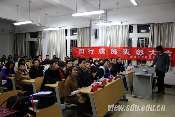 [本站讯]3月10日晚,政管学院青志协阳光行动社2012学期总结暨表彰大会在兴隆山校区举行。此次会议对上学期志愿者所付出的种种努力给予高度肯定,并对优秀集体和个人进行了表彰。