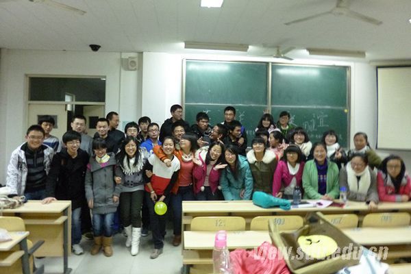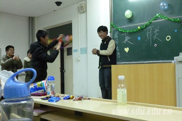 在游戏环节,大家都以极大的热情积极参与,场内气氛活跃而和谐。游戏环节分为“猜猜我是谁”、“气球爆破”和“猜词游戏”三项,按照事先分好的小组进行,充分考验了队员们的合作意识和默契程度,精彩有趣,其乐无穷。整场联谊会历时三个多小时,最后,到场的英语联合会全体成员们合影以作留念。