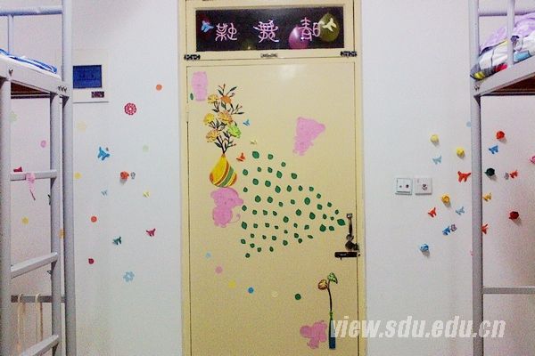 比赛由日常卫生检查和装饰评比两部分组成。各参赛寝室有的古典优雅,有的温馨别致,也有的可爱简洁,还有的清新大方。各寝室都从不同的角度、采用不同的方式展示了一个个别样的小集体。而且,每个宿舍都取了独特舍名,如宝宝居、一帘幽梦、Sweet Home等,充分体现了各个宿舍的特色。从墙壁到天花板,同学们都贴上了一些自己动手裁剪或折叠的装饰物,如星星、纸鹤、玫瑰等,主题突出,特色鲜明。在评比过程中,有些宿舍的同学还配上了精彩的讲解,让人体会到了宿舍成员之间深厚的情谊,着实给宿舍增分不少。还有的宿舍则突出了环保理念,用废纸剪了窗花,做了晴天娃娃、开关贴等等。废纸在同学们的巧手之下又有了新的用途,更给评比增添了不少精彩。