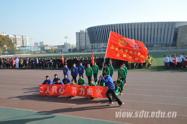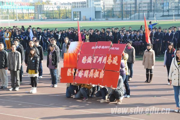 [本站讯]近日,经济学院班级风采展示在中心校区体育场举办。经济学院党委副书记李维林、齐山华以及全体辅导员出席了此次活动。本次风采展示有大一、大二、大三年级学生及研究生代表队参加。 朝气新生,创意无限。伴着《江南style》的背景音乐,2012级同学在主席台前进行了班级展示。各班鲜艳的班服展示成为开幕式上一道亮丽的风景线。不少班级将班级特色图案印在班服上,显示了班级凝聚力,象征着欢乐、希望、年轻、光明。富有创意的口号与队形变换同样展示了班级风采,如特色“三鞠躬”、兔子舞等。同学们通过共同设计班服与队形,提升了他们的表达能力和沟通合作能力。 承上启下,新颖独特。本着“趣味竞技,轻松活泼”的主旨,2011级学生喊着嘹亮的口号,迈着轻盈的步伐,向主席台缓缓走来。他们采用新颖的入场表演,节奏感十足,并结合经典歌曲《千年等一回》《we will Rock you》等,更有班级的表演配以山东大葱等奇特道具,吸引了大家的目光。11级学生以其新颖独特的表演,承上启下,体现了对于精彩青春、阳光体育的渴望,展现了他们的青春与自信。 姜还是老的辣。虽肩负着学业负担和即将到来的毕业、考研压力,2010级同学仍用自己独特的热情和洋溢的青春诠释了“趣味”两字的内涵。他们在开幕式上精彩频出,特色展示创意不断,将他们独特的表现能力、合作能力、创新能力和组织协调能力展示的淋漓尽致,表现出了良好的心理素质与自我调控能力。 活动展现了各个班级的风采,使同学们在紧张的学习生活中得到了身心的放松,提升了他们的表达与表现能力、沟通与合作能力、组织与协调能力,为大家呈现了人格培育工程的良好成果。