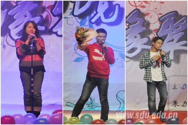 [本站讯]11月16日晚,主题为“梦萦化境,缘聚芳华”的化学与化工学院2012级迎新晚会在中心校区科学会堂拉开帷幕。化学院副院长宋其圣、院党委副书记赵希波、团委书记孙国翠等学院领导与2012级新生们欢聚一堂,共享视听盛宴。 晚会在开场舞《Ring Ding Dong》中拉开帷幕,青春的气息和动感的舞步感染了所有的在场观众。首先是颁奖环节,宋其圣、赵希波、孙国翠为院级优秀学生干部及优秀宿舍颁奖,并与获奖同学合影留念。之后,精彩节目逐一上演。器乐合奏《在那遥远的地方》将电子琴、长笛、二胡、古筝四者完美结合,清新悦耳。在歌曲串烧中,研究生黄乐飞带来一首《我的歌声里》,全场观众不约而同随他歌唱。随后,《大城小爱》、《北极星的眼泪》、《When You′re Gone》等经典曲目接连上演,李海宁则献上一首原创歌曲《没数完的星星》,歌声动情,感染人心。舞蹈串烧环节,少数民族同学带来了维吾尔族、哈萨克族舞蹈,别具特色。女生集体舞《重逢的世界》活力十足,将晚会气氛推向高潮。相声《我要上迎新》、小品《失恋治疗》和话剧《新编人在囧途》的演员们幽默风趣,他们的表演使得全场笑声不断。诸多协会也纷纷助阵,双节棍、武术等轮番上演,虎虎生风,博得现场阵阵叫好声。晚会中,老师们的表演堪称亮点。宋其圣和胡清萍老师的深情对唱《敖包相会》、张洁老师演唱的《我只在乎你》、李倩如老师的《透过开满鲜花的月亮》,欢呼声掌声不绝于耳,将现场气氛一次次推向高潮。最后,在邓潇演唱的《爱要坦荡荡》的美丽歌声中,本次迎新晚会落幕。 本场晚会不仅给现场观众带来了一场精彩纷呈的文艺盛宴,还为2012级新生们和老师们提供了一个交流的平台,增进了师生之间的感情,丰富了新生的大学生活。