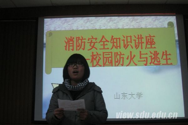 对于同学们平时应采取的消防措施,廉德庚建议进行电路防火检查。平时勤检查电路、插头是否老化或过热,以消除安全隐患。为了让同学们认识到电路防火检查的重要性,廉德庚还向同学们介绍了07年华东师范大学宿舍楼起火案,500名学生被困的原因正是电机过热。真的发生火灾后应如何自救?廉德庚说,最重要的是沉着冷静,要根据火势、房型冷静而迅速地选择最佳自救方案。他还为同学们讲了“逃生72字口诀”、“防火十法”、“灭火十招”和“逃生十策”,这些口诀简明易记,朗朗上口,同学们表示获益良多。