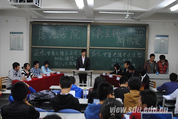 [本站讯]10月29日,信息科学与工程学院“新生杯”辩论赛在兴隆山校区拉开帷幕。作为本届“新生杯”的首场比赛,信息学院通信一班和电科班分别作为正反方,围绕“中庸之道应不应该提倡”这一辩题,展开了唇枪舌战。