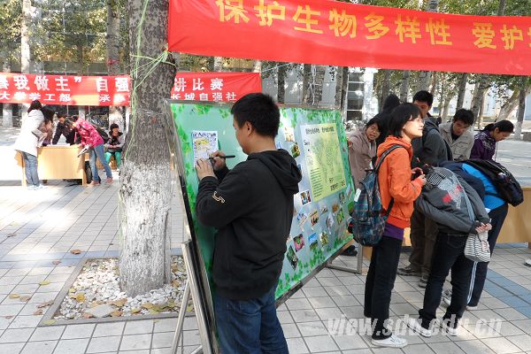 [本站讯]11月2日,生命科学学院一班在中心校区举行主题为“保护生物多样性、爱护地球大家庭”的活动。活动旨在让更多人解生物多样性现状,唤起他们对地球大家庭的关爱。