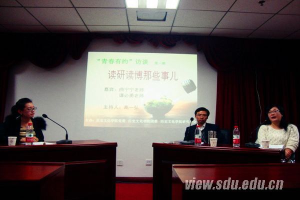[本站讯]10月24日晚,由历史文化学院党委、团委及研究生会共同主办的“青春有约”教师访谈活动第一期在中心校区举行。历史学专业曲宁宁老师和档案学专业谭必勇老师作为访谈嘉宾出席活动。