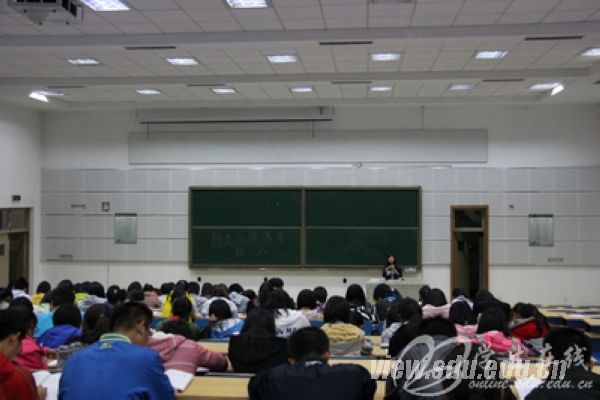 随后,讲座围绕学生手册展开。此次讲座旨在向同学们介绍山东大学规章制度、加强新生对学校各项规章制度的了解。李进向同学们分别介绍了政策法规、学校教学管理、奖惩管理、学生资助以及其他各项事务处理办法等内容。讲座中,李进着重对同学们平时的疑问进行了回答,详细讲解了《山东大学本科生综合素质测评办法》、《山东大学本科生奖学金管理办法》、《山东大学本科生学籍管理规定》等文件内容,并介绍了学校创新基金与创新学分、第二校园、海外求学、社会实践、转专业、双学位等同学们关注的问题,帮助新生结合自身特点,明确学习目标,激发学习热情,引导他们积极参与、大胆创新。除此之外,她还讲解了《普通高等学校学生管理规定》、《山东大学学生违纪处分实施细则》,结合案例帮助新生树立法律法规观念,加强自我规范。