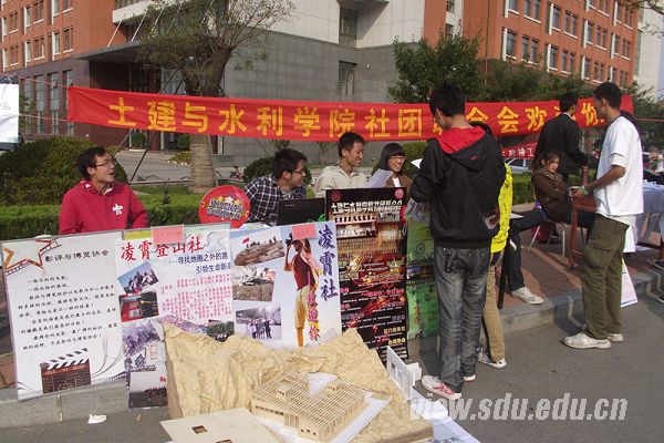 [本站讯]10月14日,山东大学“百团大战”继续进行,土建与水利学院社团联合会带领包括CG联盟、爱心协会、演艺协会等在内的院内六个院校共建社团参加学校社联在兴隆山校区举办的“百团大战”,举行纳新活动。
