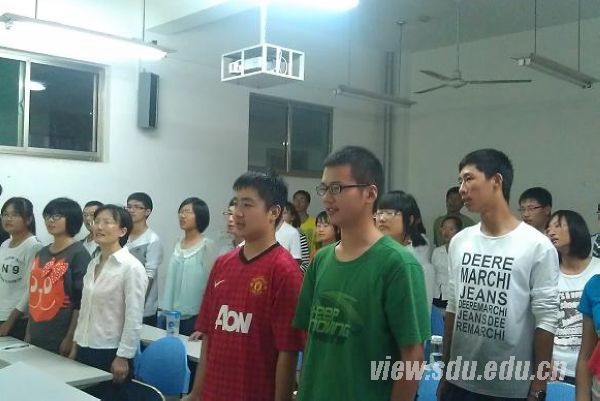 学院2012级辅导员兼党支部书记路丽丽担任主持。她首先介绍了党支部培养发展党员的程序、要求等内容,坚持“成熟一个,发展一个”,希望各位同学不断提高党性修养,为学院、班级、同学做出贡献。党支部组织委员李昭同学、宣传委员杨鹏飞同学也代表新生党员相继表态,作为支部委员感觉很光荣、很幸运,但同时更感到责任重大,表示一定会努力工作,不辜负大家的信任,使党支部不断发展壮大。然后,李赛强结合多年的工作经验和个人经历对新生提出希望与建议。她说,加入共产党的队伍,需要同学们把对党的热爱与向往通过自身行为表现出来。她又以军训为例,提出军训对人的精神面貌具有不可估量的促进作用,有利于培养同学们的集体荣誉感,并肯定了同学们在军训中的优异表现。随后,李赛强结合自己国外访学的经历,使同学感受到共产党领导六十年来中国发生的巨大变化,坚定同学们热爱共产党、热爱祖国的信心与决心,努力为社会奉献力量。她语重心长地告诉同学们,进入大学的前六个月,同学们的智力、情感、精神都会发生转变,希望同学们能继续保持优良作风,取得更大的进步,制定高远的目标,在精神层次上具有更高的追求。最后,李赛强就网络言论问题与同学们进行交流,让学生们意识到要想做一个合格的党员,就要全面提升自身修养。书记幽默风趣的谈吐不时引来同学们的阵阵掌声与欢笑声,在轻松愉悦的氛围中使自己的思想得到升华。大会的最后一项,全体起立奏唱《国际歌》。