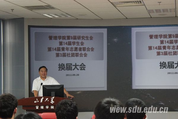 [本站讯]9月20日,管理学院第九届研究生会、第十四届学生会、第十四届青年志愿者联合会和第三届社团联合会换届大会在中心校区举行。院长徐向艺、院党委书记左金朝、院党委副书记王德胜和石清云参加了会议。