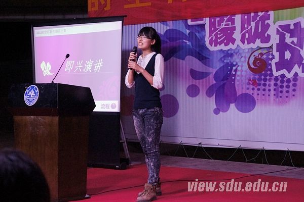 [本站讯]9月14日晚,软件学院举行了“时空杯”演讲比赛决赛。本次比赛由时空视点传媒主办,经过主题演讲与即兴演讲两个环节的实力比拼决出冠军。 比赛中,选手们首先以“在春天里等待春天”为主题进行主题演讲,每位选手都精心准备,完全脱稿演讲,展现完美的“孤军上阵”。尤其1号选手邢玉婷气场强大,演讲自然流畅,毫无斧凿之功,引得观众阵阵叫好。在之后的即兴演讲环节中,每个选手根据所抽取到的题目进行两分钟的自由发挥,阐述自己的观点。这个环节不仅考验选手的心理素质,更考验他们的随机应变能力,对选手而言是又一次的挑战。有些选手就因紧张而忘词,或者略显局促,但也有些选手依旧镇定自若,6号选手赵芳华语调不急不缓,论据充足,给评委留下了良好的印象。比赛中场,前任广播社社长梁爽给大家带来了一首《高原红》,她甜美的嗓音不仅博得了阵阵掌声;街舞协会会长也为大家带来了精彩绝伦的街舞表演,他帅气的舞步、冷酷的造型点燃了全场气氛,观众纷纷尖叫喝彩。软件学院2012级新生辅导员杨倩、张四化,计算机学院2012级新生辅导员张迎春;计算机学院、软件学院学生会有关负责人,上任时空经理、上届“时空杯”冠军张倩等作为嘉宾参加活动。 最后,经过打分,7号选手尤瑶以声情并茂的演讲、冷静的临场表现赢得了最高分摘得冠军。本次演讲比赛给新生们提供了良好的平台,激励他们勇于展示自己的风采,让生命在一次次的努力中绽放光芒。
