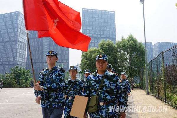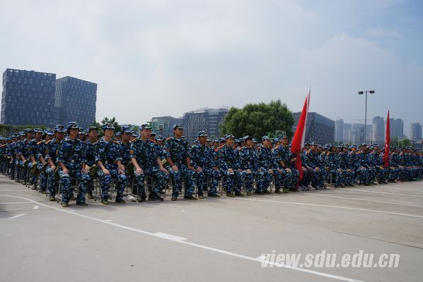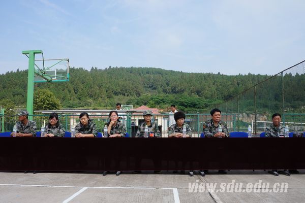 [本站讯]9月3日上午,2012级新生军训动员大会在软件园校区篮球场举行。山东大学军训团五营营长李传道,教导员贺平,副营长宋蒙涛,军训副教导员王永杰、张慧、郭春晓、李雨嘉,以及各连队的连长、指导员、副指导员、排长等出席大会。 大会在雄壮的国歌声中拉开序幕,主持人以嘹亮的嗓音介绍了与会嘉宾,每一位嘉宾都以一个标准的军礼给学员们上了军训第一堂课,赢得了学员们的阵阵掌声。贺平在发言中从政治角度向学员们阐述了军训的重要性,并鼓励学员们在军训中锻炼自己,磨练意志。李传道希望学员们增强国防观念,珍惜军训机会,提高自我服从意识,精神饱满、斗志昂扬,为党的十八大献礼。 大会上,二十一连连长杨瀚琛下挑战书,鼓舞二十一连学员们在军训中认真训练,努力让自己成长地更加茁壮。二十二连代表毅然接下应战书,豪迈地问二十二连学员有没有信心在训练场上战胜二十一连。二十二连学员们皆起立吼出“有!有!有!”,表明了他们的决心。接下来,二十三连代表衷心感谢了军训团成员们对军训的关心,二十四连教导员鼓励学员们要在军训中锤炼自己,使军训充实、愉快,二十五连学生代表刘畅代表学员宣誓了军训的决心与信心。军训动员大会圆满落下帷幕。