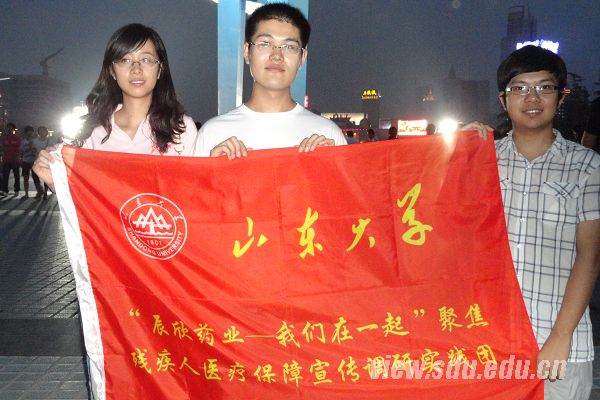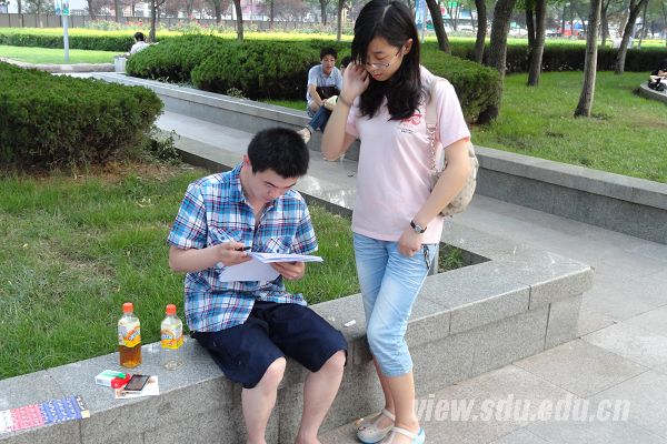 泉城广场作为济南市中心,人流量大,便于问卷调查的进行。此次问卷旨在调查民众对残疾人医疗保障体系的了解度、对残疾人的关注度、关于关爱残疾人活动的参与度以及对残疾人康复救助事业的支持度,为调研报告的撰写提供素材依据。许多市民不仅配合问卷调查,还主动询问有关残疾人医疗等问题;同时,他们表示山东大学暑期社会实践是学生了解社会的平台、连接校园与工作的桥梁,对我们的调查给予了极大的支持和鼓励。