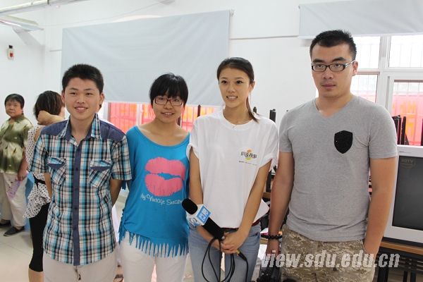 齐鲁电视台《小溪办事》栏目组特派员来到现场进行新闻报道。他们与SWAT社会实践团队的成员们亲切交流和沟通,对队员们热情服务、回报社会的精神给予高度赞扬,并合影留念。