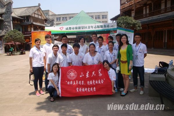 [本站讯]7月7日至17日,山东大学党委学生工作部“回眸五年硕果,迎接党的盛会”宣讲调研实践团四川支队以成都市为主要调研地点,先后深入大学、社区、博物馆、古镇等地调研参观,以发放调查问卷、进行访谈等形式开展社会实践活动,使队员们切身感受到了十七大以来四川地区发展的突出成就。在调研过程中,团队成员还与四川旅游学院(筹)及台湾元智大学开展了友好合作交流,至此,四川支队圆满完成了此次调研工作。