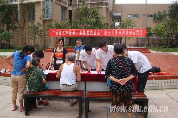作为宣讲调研团,团队采取了多种形式宣传党在十七大期间的成果贡献,取得了不错的效果。队员们以社区为基本点,搭建宣传平台,对来访群众进行访谈,同时在博物馆、客家古镇等地发放宣传单页,对游客及当地居民进行宣讲。访谈过程中,队员了解到,龙都社区新建的市民服务中心是为群众解决实际困难的公共服务综合体,为市民、企业提供家居服务、家电维修、交通出行、医疗保健等共26类服务项目,切实履行了实实在在为老百姓办事的服务原则。同时,团队成员充分利用博物馆等地人员密集的优势,对当地居民及游客进行集体宣讲,既加深了对党制定实施的惠民政策的理解,也使人民更真实直观地体会到了十七大以来生活质量的提升。