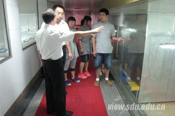 上午10时左右,队员们到达“好当家”工业园区。集团办公室主任于金华为我们详细介绍了企业的基本情况,随后,队员们在方国建队长的带领下,进入集团的生产车间进行观摩。据方队长介绍,该生产车间目前是全亚洲最大的食品车间。队员们总共参观了十条生产流水线,这些车间分常温车间及高温车间,分别处理加工不同要求的水产品,如高温鲍鱼、即食鱿鱼、即食飞蛤等。车间消毒工作严谨,严格遵守1小时清洗一次板案的原则,严谨的工作态度让队员们赞叹不已。随后,在技术研究所所长胡炜的带领下,队员们进入展览中心参观。展厅中心陈列着公司的整体规划图,包括了食品加工区、海洋生态区、绿色新能源区等11个园区。对展厅内陈列的海参产品,队员们表现出极大的兴趣,纷纷向胡所长提问关于海参生产及有关保健品生产问题。胡所长向大家详细地介绍了冻干、盐渍、鲜冻等不同处理方法对海参产品的影响,而且解释了公司生产的海参原浆、海参胶囊的绝佳营养保健价值。中午,队员们到集团的海洋牧场观看,上午的调研活动暂时告一段落。