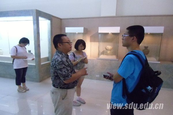 在调研活动过程中,博物馆文物科负责人任庆山向团队介绍了菏泽自先秦至明清的馆藏文物,并对著名的元代沉船进行了重点介绍。随后,他又详细介绍了自“十七大”强调发展社会主义先进文化事业以来,菏泽市博物馆在馆藏理念、接待人群、馆内政策等方面一系列的良性变革,并对当前博物馆体制建设有待改善的方面提出了自己的意见和建议。