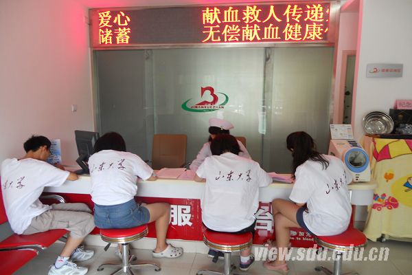 [本站讯] 7月9日上午,山东大学“南丁格尔”暑期社会实践团队的队员们来到济南市英雄山献血屋,进行捐献造血干细胞相关内容的学习和培训,为开展造血干细胞公众“知信行”调研活动奠定基础。