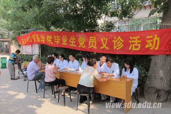 [本站讯]6月20日,口腔医学院联合趵突泉社区,以“爱心奉献社会”为主题深入社区开展义诊宣传活动,学院2012届毕业生党员参加活动。