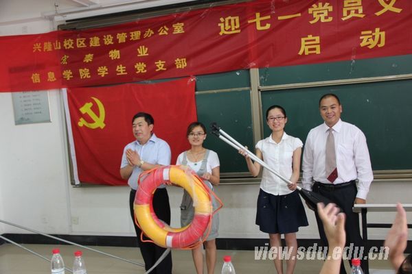 [本站讯]6月14日,信息科学与工程学院迎“七·一”党员义务清理天工湖活动启动仪式在兴隆山校区举行。此次活动由信息学院党委、兴隆山校区建设管理办公室和宏泰物业共同发起,旨在保护兴隆山校区的环境卫生,创建绿色校园,践行广大党员全心全意为人民服务的宗旨。学院党委副书记赵世民、兴隆山校区建设管理办公室主任刘相宜、宏泰物业总经理隋玉谦参加仪式。