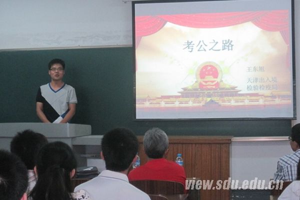 交流会在主持人孙璇的嘉宾介绍中拉开了帷幕。首先,毕业生田昌伟作报告,为大家讲解了他的研究生生涯规划以及文献阅读、文献写作、投稿等经验。田昌伟在流行病与卫生统计学专业的三年研究生期间以第一作者和共同作者身份发表论文8篇,其中7篇被SCI收录,1篇中文核心期刊论文,获得山东大学校长奖学金、山东大学优秀研究生标兵、山东省优秀学生、山东大学第二届学生“五四”青年科学奖等荣誉,现已签约昆山市疾病预防控制中心。接下来,2010年本校保送研究生王东旭结合自身国家公务员考试的经历分别从初试、面试以及体检等各个环节向大家介绍了公考经验。王东旭,公共卫生硕士班班长,读研期间发表综述和论著各一篇,获山东大学优秀共青团员、山东大学优秀研究生干部以及山东大学优秀毕业生等荣誉,现考入天津市出入境检验检疫局。同样2010年保送本校公共卫生专业的研究生杨慧作报告,向大家重点讲述了面试的方法和技巧,给大家传授了“面试有话说的秘诀”,并结合自己的例子让大家认识到了面试的重要性。杨慧现已考取天津出入境检验检疫局,笔试成绩117.4,最终以第一名的成绩顺利成为一名公务员。最后,赵伟宁介绍了自己的多次奋战的经验,告诫大家要将来找工作要“广撒网,不要坐等”、“初试和面试同等重要”,并以自身的例子让大家对公务员考试、选调生考试以及事业单位考试有了全面的了解和认识。赵伟宁在读研期间以第一作者和共同作者发表论文7篇,多次获得奖学金及荣誉称号。