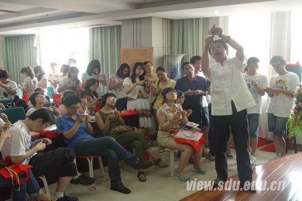 开幕式上,刘学斌率先发言,表示校园培训班作为介绍民俗手工艺品的文化课程,将极大地激发同学们的兴趣,同时也是同学们肩负起传承民俗文化责任的契机,希望同学们珍惜本次培训机会,有所收获。苗海光在发言中剖析了当前严峻的就业形势,对参加培训的同学寄予厚望,并承诺将提供必要的服务与帮助。山东大学医学院团委老师曲珊娜对出席领导和前来授课的老师致谢,向面临毕业季的学生进一步阐述了此次活动的意义,希望同学们能在钻研医学专业之余,关注民俗,关注手工艺品,借以提高综合素质,全面发展。她还强调医者仁心,参加民俗手工艺品培训可以培养耐性与细致,将对同学们未来的从医之路提供巨大帮助。开幕式由济南市民俗旅游文化产业协会副会长信师福主持,济南市民俗艺术学校老师邓军秋、郭金平、李梅分别介绍了面塑、剪纸和中国结的发展历程,同时教授相应技巧。同学们均细致观察,认真聆听,并亲自动手实践,领悟其中奥妙。开幕式结束后,第一日的培训课程随即展开。