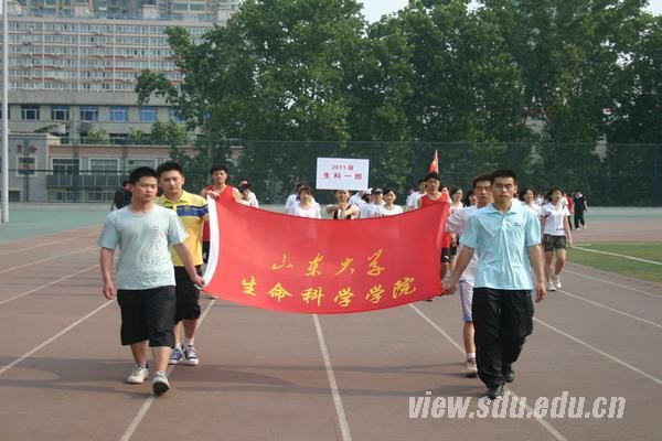 [本站讯]5月20日,由生命科学学院团委主办、院学生会体育部承办的生命学院2012年春季田径运动会在中心校区举行。 来自2010级、2011级15个班级体的近300余名运动员报名参加了本次田径运动会,进行了100米、200米、400米、800米、1500米、4*100接力、铅球、跳高、跳远等10多项田径项目以及拔河、集体跳绳、踢毽子等趣味项目的角逐,学院教师也积极报名参加踢毽子、掷飞镖、颠足球、跳绳等项目比赛。开幕式上,迎来了运动员入场方阵。伴随着欢快的进行曲,同学们迈着整齐的步伐、喊着响亮的口号,以班级为单位列队走过主席台。他们或以旗帜、横幅展现自己的班风、班训,或以彩带、气球点缀精心编排的队形,还有的进行了武术、街舞、双截棍等才艺表演。 随后,郑晓健代表学院向大会的顺利召开表示祝贺,并发表开幕致辞,勉励同学们在运动中不仅要提升身体素质,更应该注重在运动中学习文化知识、实现个人成长。 随着裁判员代表、运动员代表的依次宣誓,运动会顺利开幕,各项目的比赛依次展开。经过激烈的竞争,最终2010级学生郑文韬在铅球比赛中取得了11.05米的好成绩再破学院记录,许岚、袁增林也分别在跳高和垒球比赛中取得1.55米以及61.46米的好成绩。下午6时,历时一天的运动会在紧张而有秩序的氛围中顺利闭幕,11级生科4班获得团体总分第一名,11级临床八年制班级,11级生科2班 以及11级口药联队获得了体育道德风尚奖。 此次运动会的举办,一方面响应了学校阳光体育运动的号召,以锻炼身体、展现拼搏进取精神、培养团结协作意识、打造班级凝聚力为目的;另一方面也在为学校秋季运动会选拔优秀运动员。学院党委副书记郑晓健出席了开幕式,各年级辅导员、学生会主席以及有关部门负责人参加了运动会。