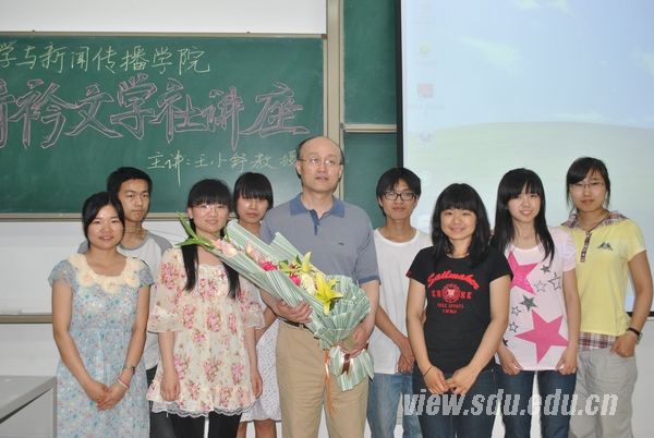 讲座伊始,王小舒教授为大家介绍了中国古代戏剧的发展演变,重点谈及了元代戏剧和以爱情为主题的戏剧,作为下面内容的铺垫。接下来他就《西厢记》产生的原因、爱情如何为婚姻作主等问题谈了他独到的见解,并提出,当今我们重新面对婚姻问题时,要把经典中的文化内涵挖一挖,将现实生活中的问题与经典联系起来,从中获得有益的启示。讲座中,王小舒教授把更多的时间放在了与同学们的交流上。同学热情活跃,争先恐后地提出自己的想法和问题。针对同学们提出的《西厢记》与《莺莺传》的结局对比问题,王小舒教授谈到了悲剧对读者心灵的净化与大众对喜剧结局的要求。还有同学对文学作品中的女性形象进行了分析,王小舒教授则就他对女性在历史发展过程中地位的变化和对社会的作用谈了自己的理解。王小舒教授还对比了《西厢记》与《红楼梦》,并对这两部文学巨著里的爱情进行了精辟深刻的解读和分析。他肯定了《西厢记》主人公历经苦难与挫折最终获得爱情的坚贞。讲座在“愿普天下有情的都成了眷属”的美好祝愿中结束。