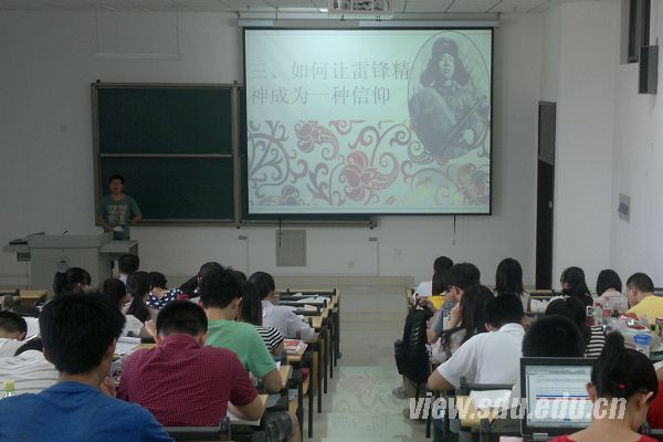 [本站讯]5月10日下午,数学学院本科生党支部在中心校区开展了雷锋精神学习活动。活动旨在贯彻落实十七届六中全会通过的《中共中央关于深化文化体制改革推动社会主义文化大发展大繁荣若干重大问题的决定》要求,深入开展学雷锋活动,采取措施推动学习活动常态化,同时将本科学生党支部“我来讲时政”活动推向深入。数学学院2010、2011级党支部承担了此次主讲任务。